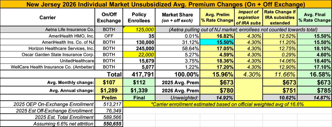 UPDATE 10/27/25: With just 5 days to go before the launch of the 2026 Open Enrollment Period, the New Jersey Dept. of Banking & Insurance has published their final, approved 2026 rate filing decisions: